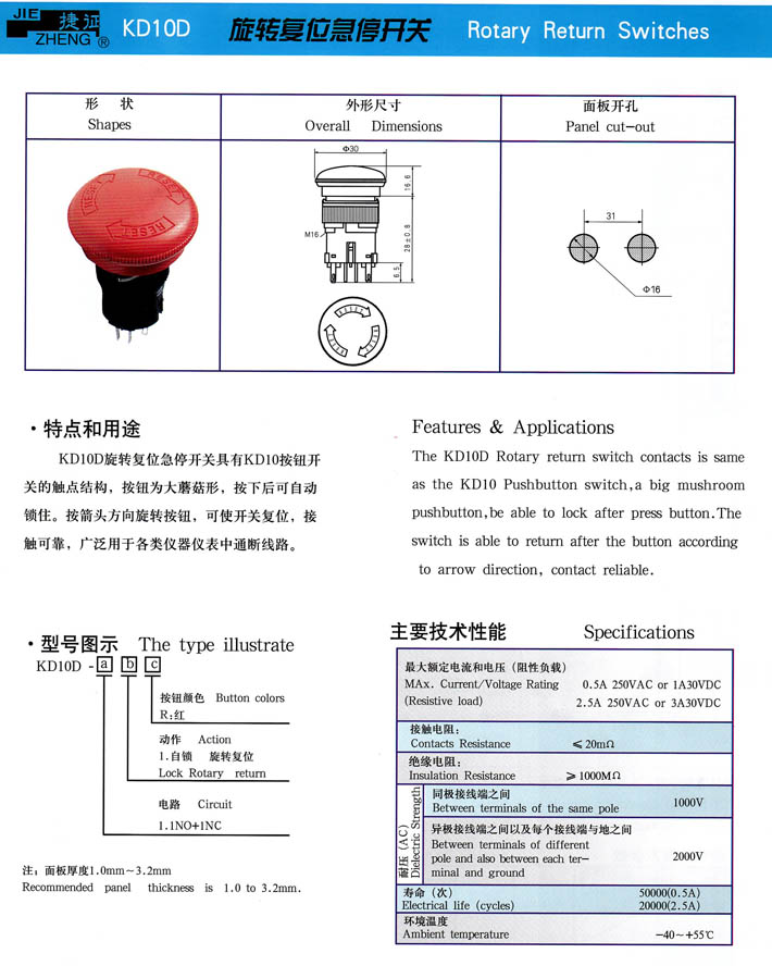 • KD10D旋轉(zhuǎn)急停復(fù)位開關(guān) 產(chǎn)品型號:KD10D